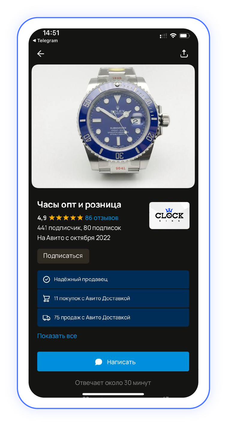 ➽ Размещение магазина в разделе “Авито Молл”